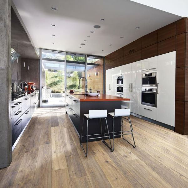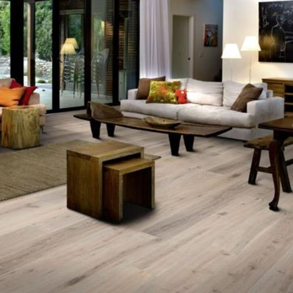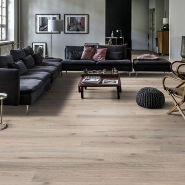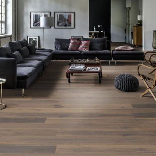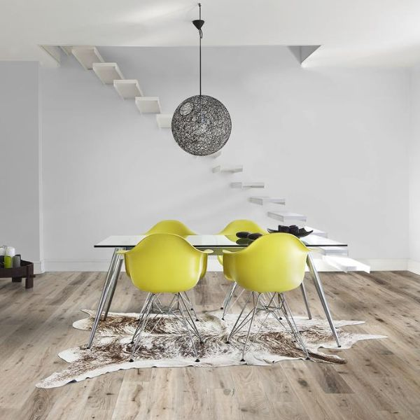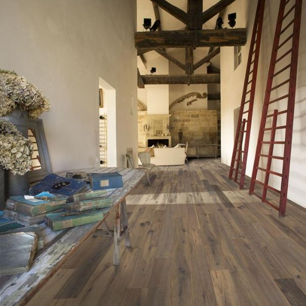 The Artisan Collection is a single strip collection with a smoked finish enhancing the natural colour variations for a rustic expression. Knots and cracks add depth and balance to the toasted sesame seed highlights. Each board is carefully brushed to bring out the character of the grain of the wood. Four-sided bevelling at the ensures a classic full plank look and feel. Hand-scraping enhances the worn appearance of the floor.