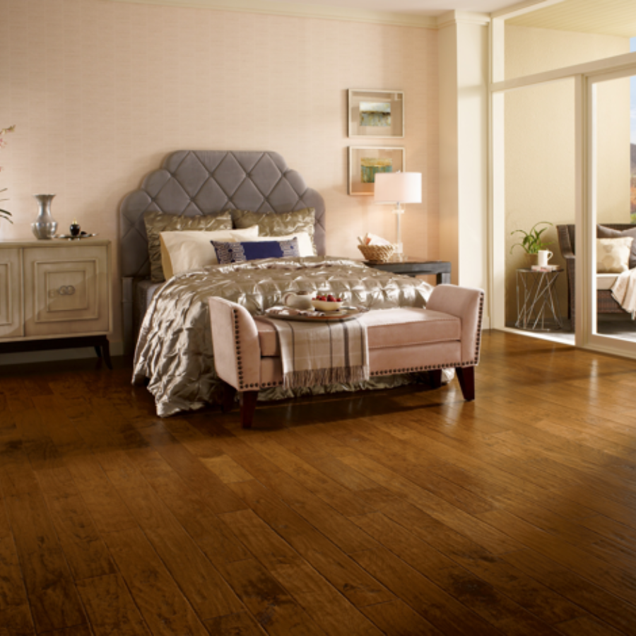 Bruce Frontier is a beautifully textured and uniquely scraped engineered hardwood collection. Random scraping for a one-of-a-kind, beautifully rustic visual and luxurious 5˝ wide planks.Dura-Luster Plus finish protects the beauty of the hardwood for long-lasting durability. Made in the USA.