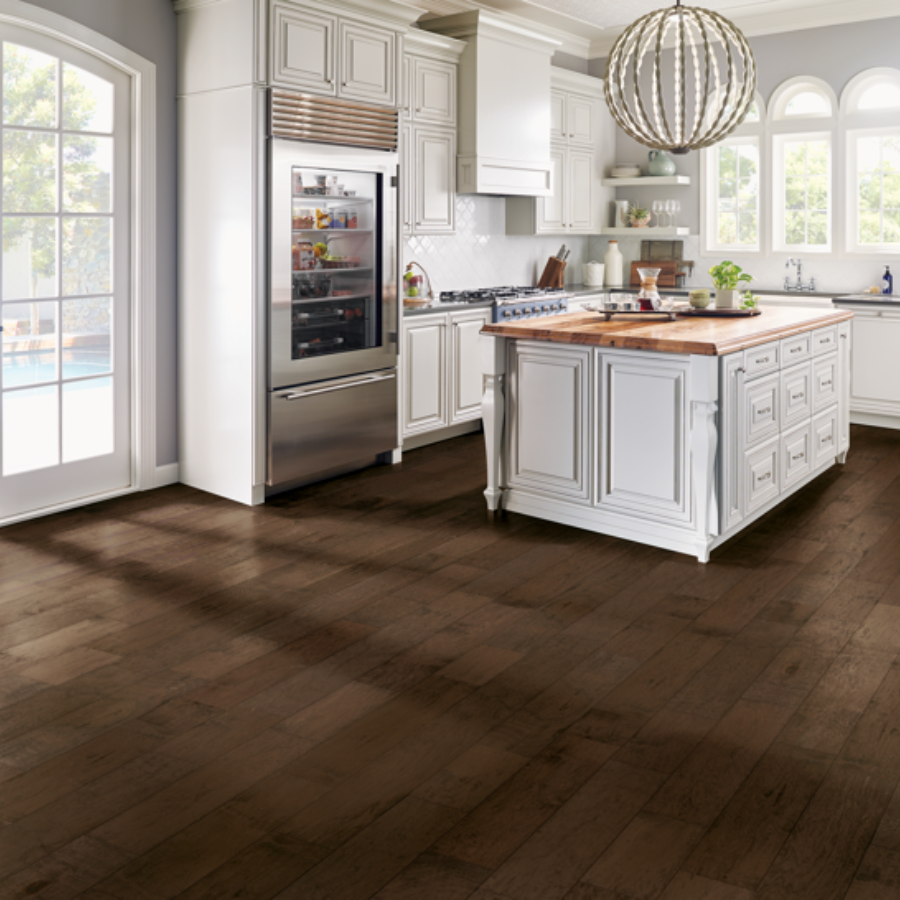 Bruce Next Frontier has a classic hand-scraped texture that gives a depth to the wood grain that you can see and feel. Beauty and durability in an engineered 6 1/2" wide plank option. Made in the USA.