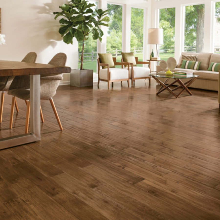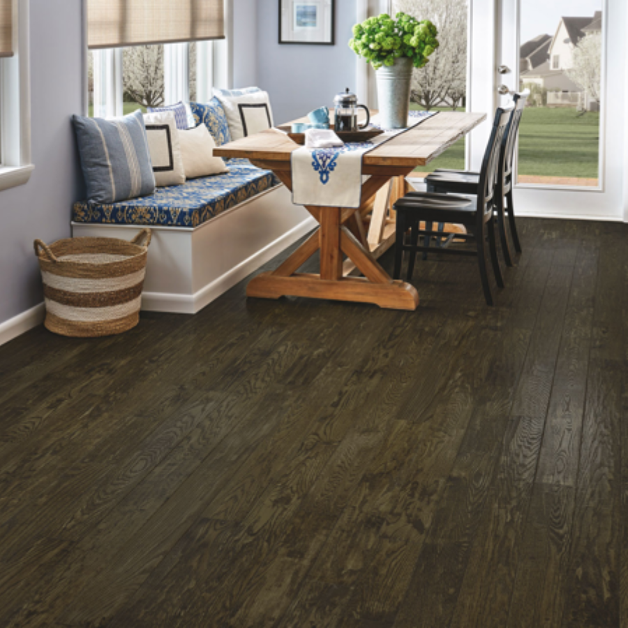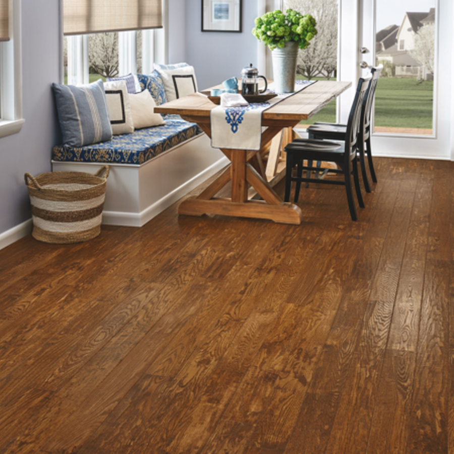 Bruce Signature Scrape collection offers 4" and 5" wide Oak and Maple solid hardwood options in light, medium and dark colors and gloss levels. Made in the USA.